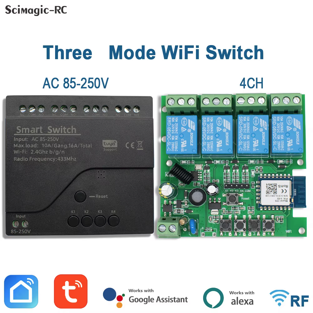 Tuya DC 85-250V 4 Channel Wifi Smart Home Appliance Control Switch Module 4CH 220V 10A Relay Momentary Toggle Latching